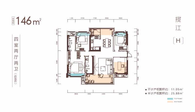 237-291㎡RIVER MAX新規(guī)負(fù)公攤戶型,得房率高達(dá)110%